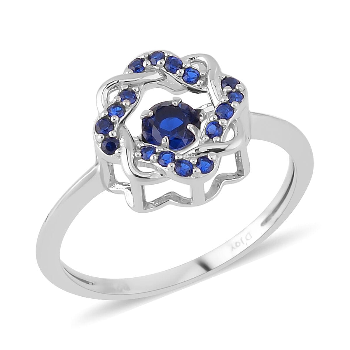 Sparkling Dancing Simulated Blue Diamond Ring in Rhodium Over Sterling Silver (Size 10.0) 0.65 ctw