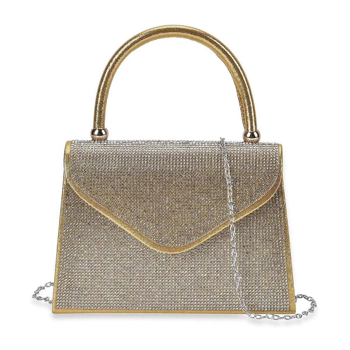Sparkling Gold Clutch Bag with Handle Drop & 46.45 Chain Strap