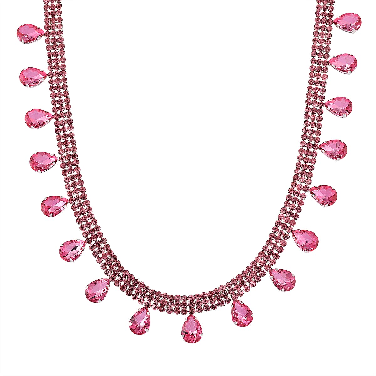 Sparkling Pink Austrian Crystal Dripping Necklace (16-19 Inches) in Silvertone