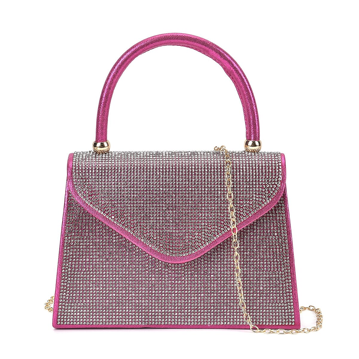 Sparkling Rose Red Clutch Bag with Handle Drop & 46.45 Chain Strap