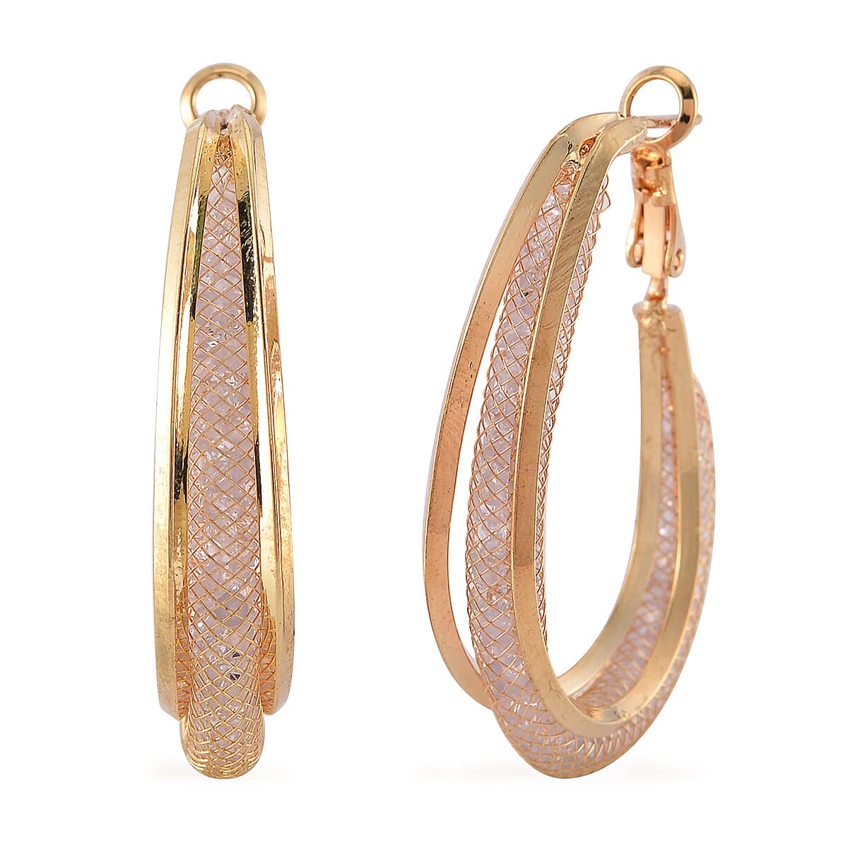 These Austrian crystal hoop earrings feature a striking design with crystals encased within a fishnet tube, all crafted from durable metal. The dynamic arrangement allows the crystals to catch light from every angle, enhancing their sparkle and adding an elegant flair to any look.
