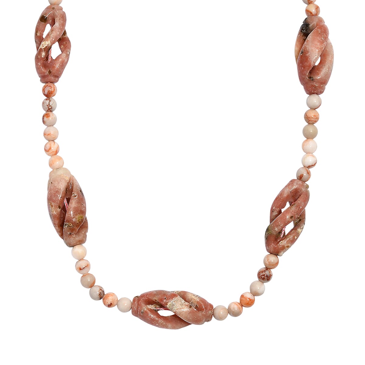 Spice Jasper and Pink Web Jasper 223.00 ctw Beaded Necklace in Platinum Over 20 Inches