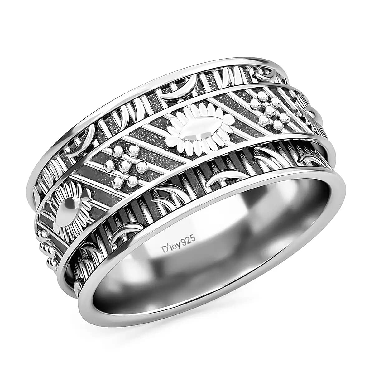 Spinner Ring in Sterling Silver, Anxiety Ring for Women, Fidget Rings for Anxiety for Women, Stress Relieving Anxiety Ring, Promise Rings (Size 5.0) (4.80 g)
