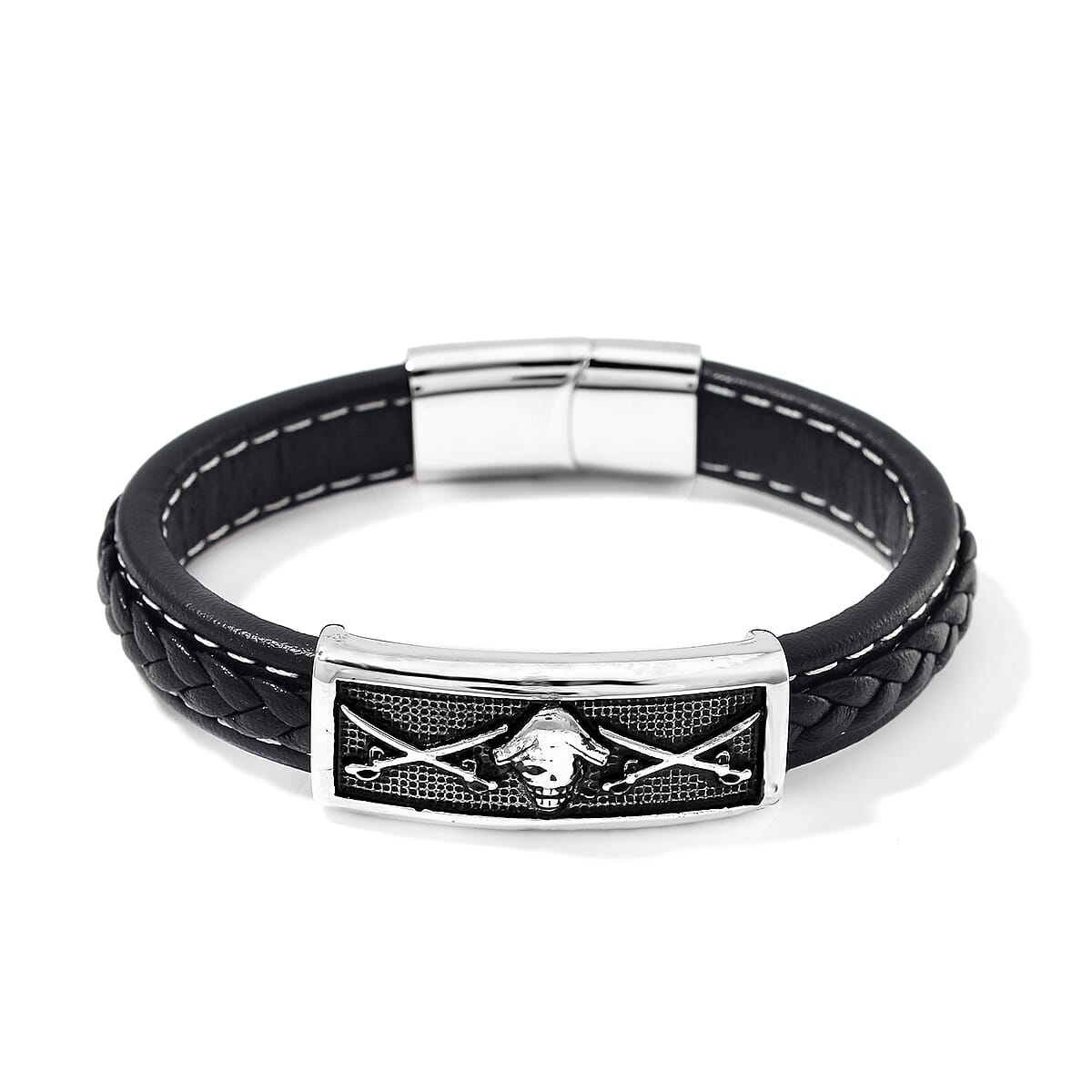 Embrace bold sophistication with this stainless steel and microfiber leather bracelet. Featuring a braided design, the leather bracelet is crafted in stainless steel and features a secure clasp, offering elegance and practicality. Perfect for everyday wear or special occasions, this braided bracelet adds a refined touch to any ensemble.