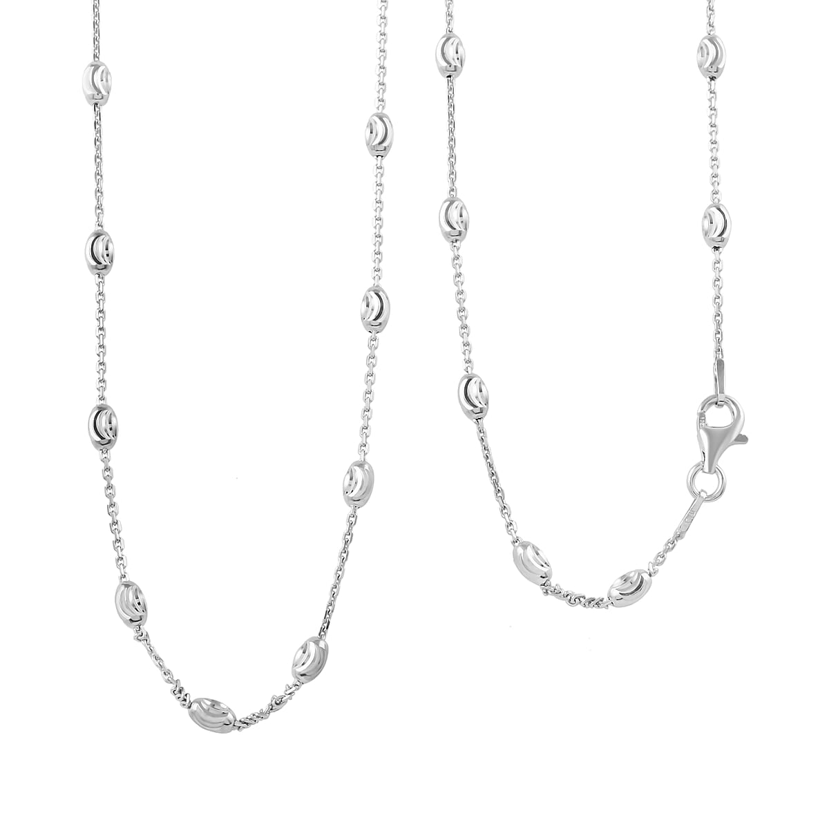 Sterling Silver 3mm Station Oval Moon Diamond Cut Chain Necklace (36 Inches) (7.90 g)