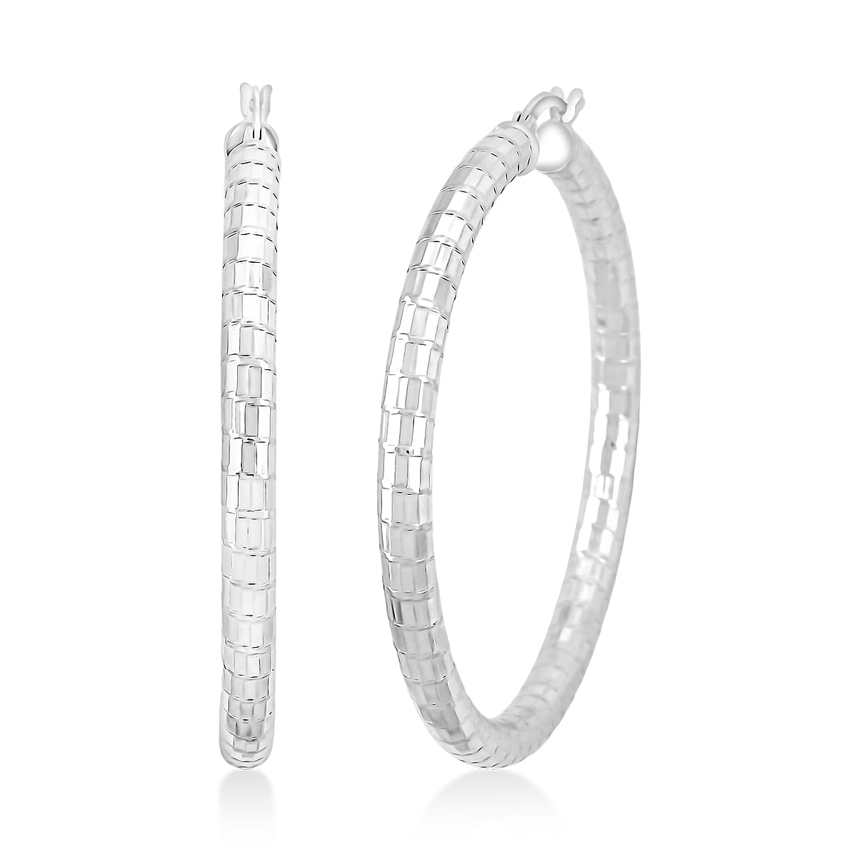Sterling Silver 50mmx4mm Spiral Groove Hoop Earrings 10 Grams