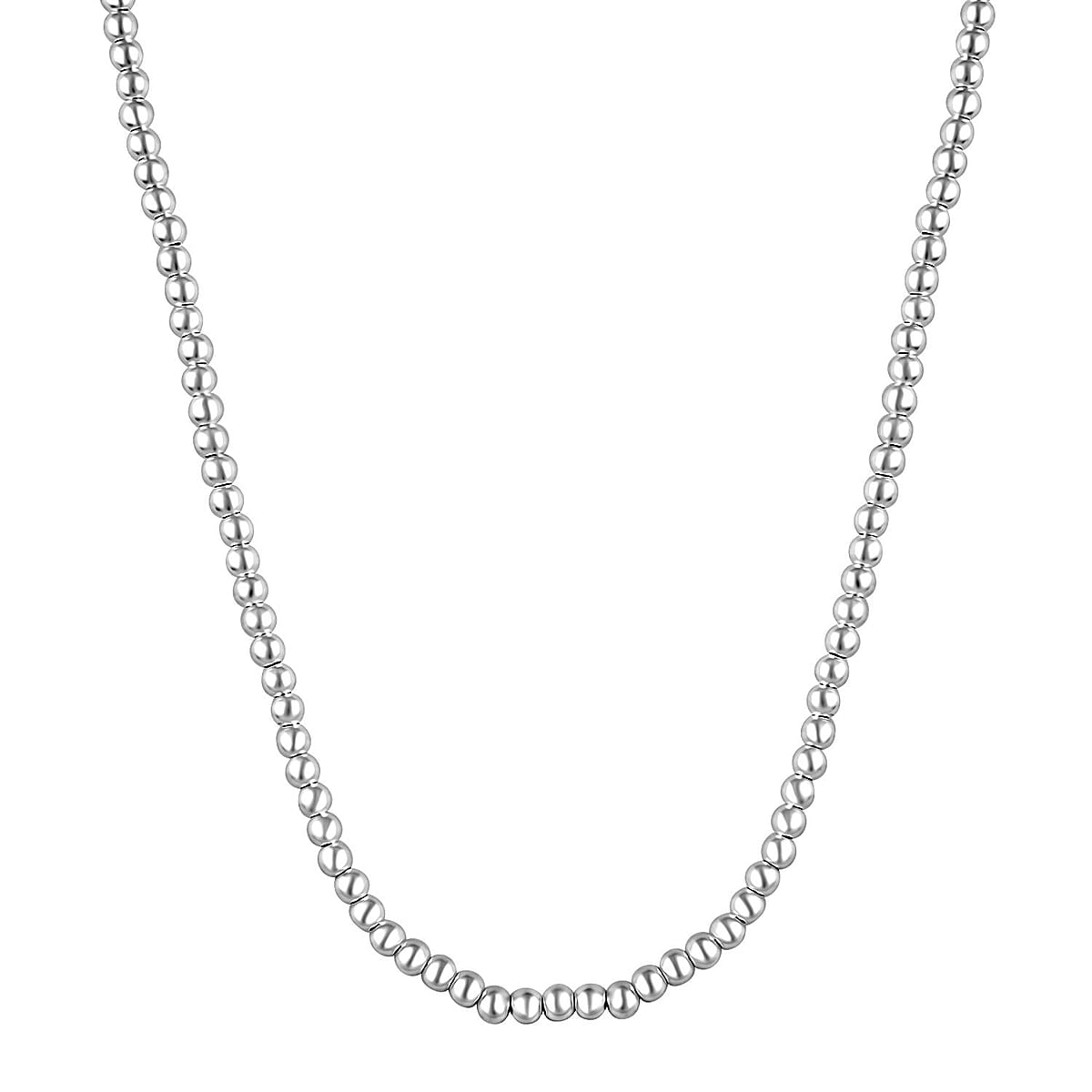 This sterling silver beaded necklace features a string of meticulously crafted beads, each polished to a high shine to catch the light beautifully. The design offers a simple yet elegant look that can easily transition from day to night wear. Durable and tarnish-resistant, this silver necklace promises longevity and style in any jewelry collection.