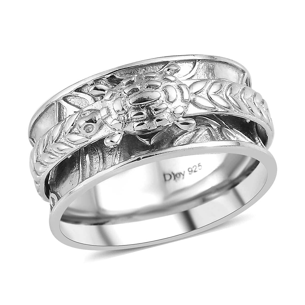This spinner ring, crafted in sterling silver, features a central band that smoothly rotates around the fixed inner ring. The sleek design offers a tactile experience for stress relief and concentration. Durable and stylish, this silver ring seamlessly combines functionality with a classic aesthetic, making it a versatile addition to any jewelry collection.