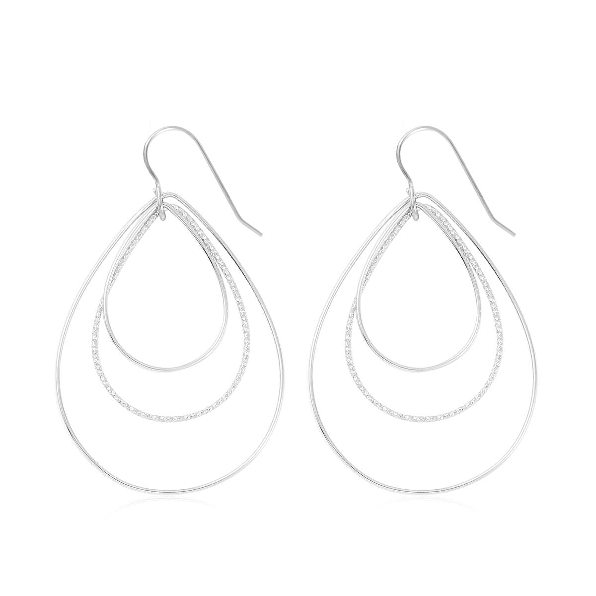 Inspired by drop design, these teardrop earrings are crafted in sterling silver. The metal is molded and shaped in a drop pattern, each given a different size and aligned in a fishhook on one end resembling the serene look of raindrops falling from the sky. The textured pattern in one of the drop designs looks as if accent gemstones are sparkling when seen from a distance. The fishhook closure on ends allows easy gripping of earrings to the earlobes. Easy to carry, these dangle earrings are a must-have for casual wear.