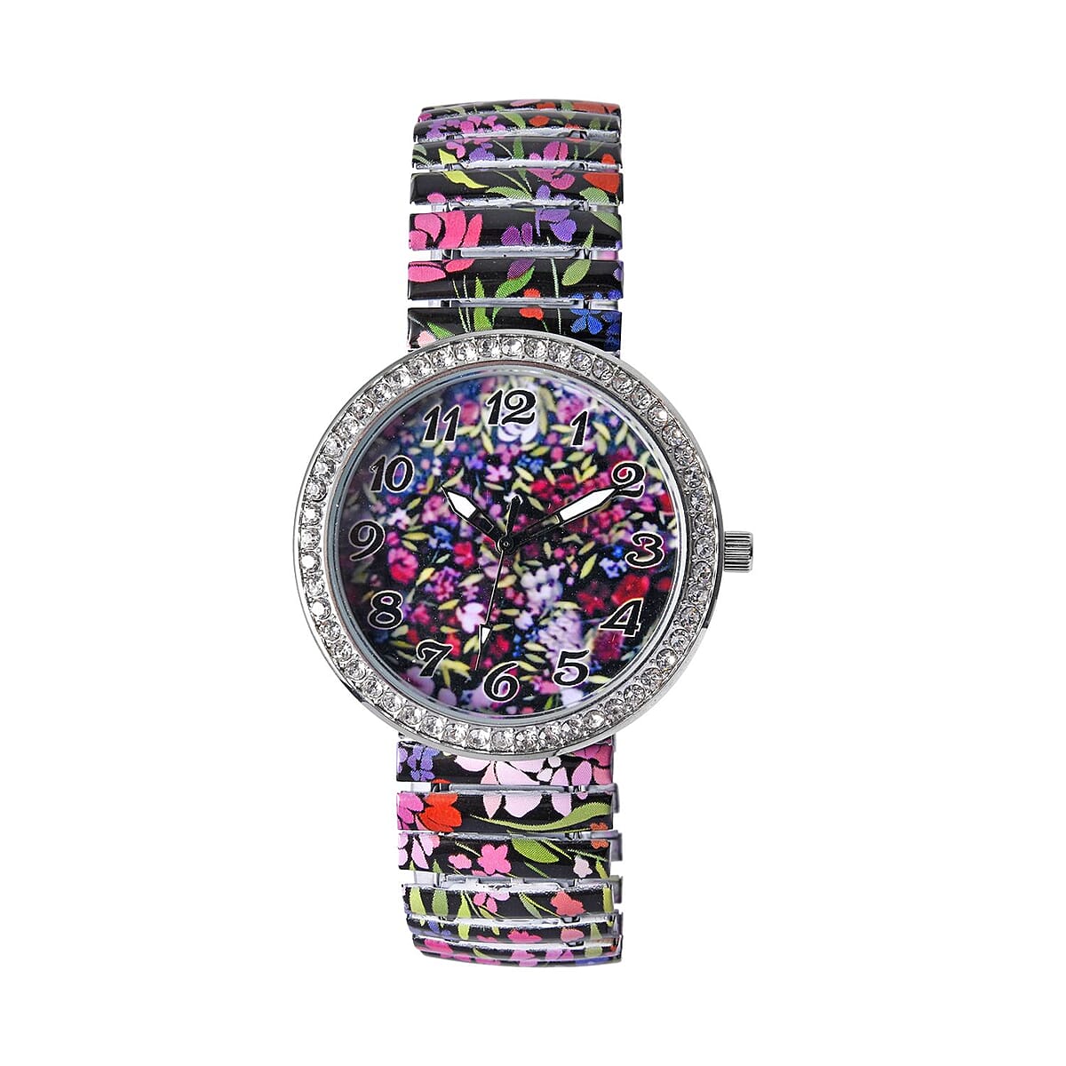 Upgrade your casual appearance by wearing this beautiful bangle watch from STRADA. This watch’s strap and dial are designed with a floral pattern. It contains a round numeric dial for easy time reading. Beautiful Austrian crystals are studded around the dial to make it look appealing. This watch contains a bracelet strap for perfect gripping on your hand. Wear this bracelet watch when heading outdoors, traveling, shopping, or more.