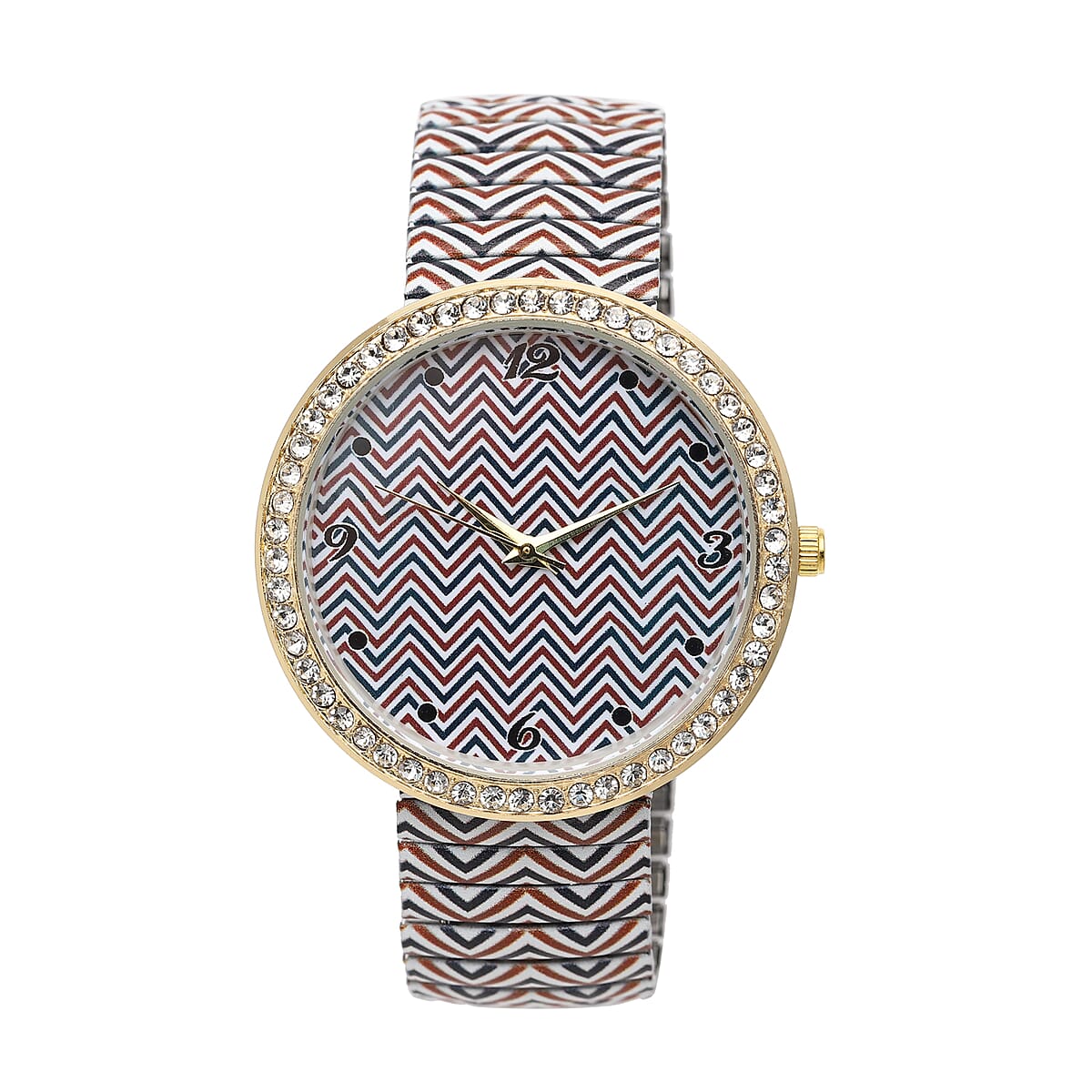 Strada Austrian Crystal Japanese Movement Chevron Pattern Stretch Bracelet Watch with Stainless Steel Strap