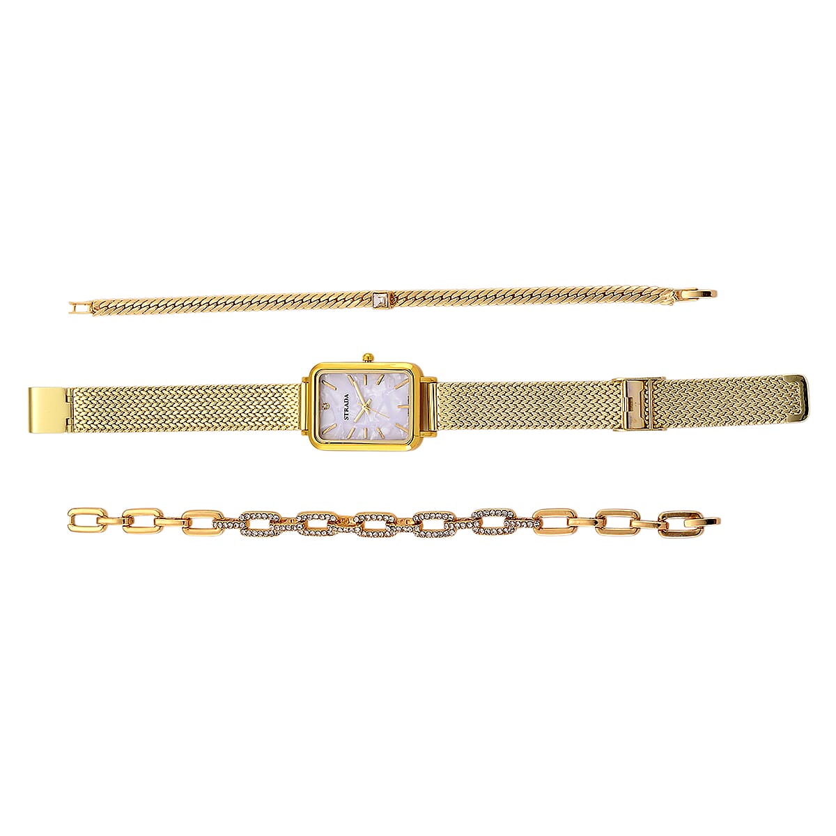 Strada Austrian Crystal Japanese Movement Fake MOP Dial Watch and 2 Pcs Goltone Bracelet (7-7.5In)