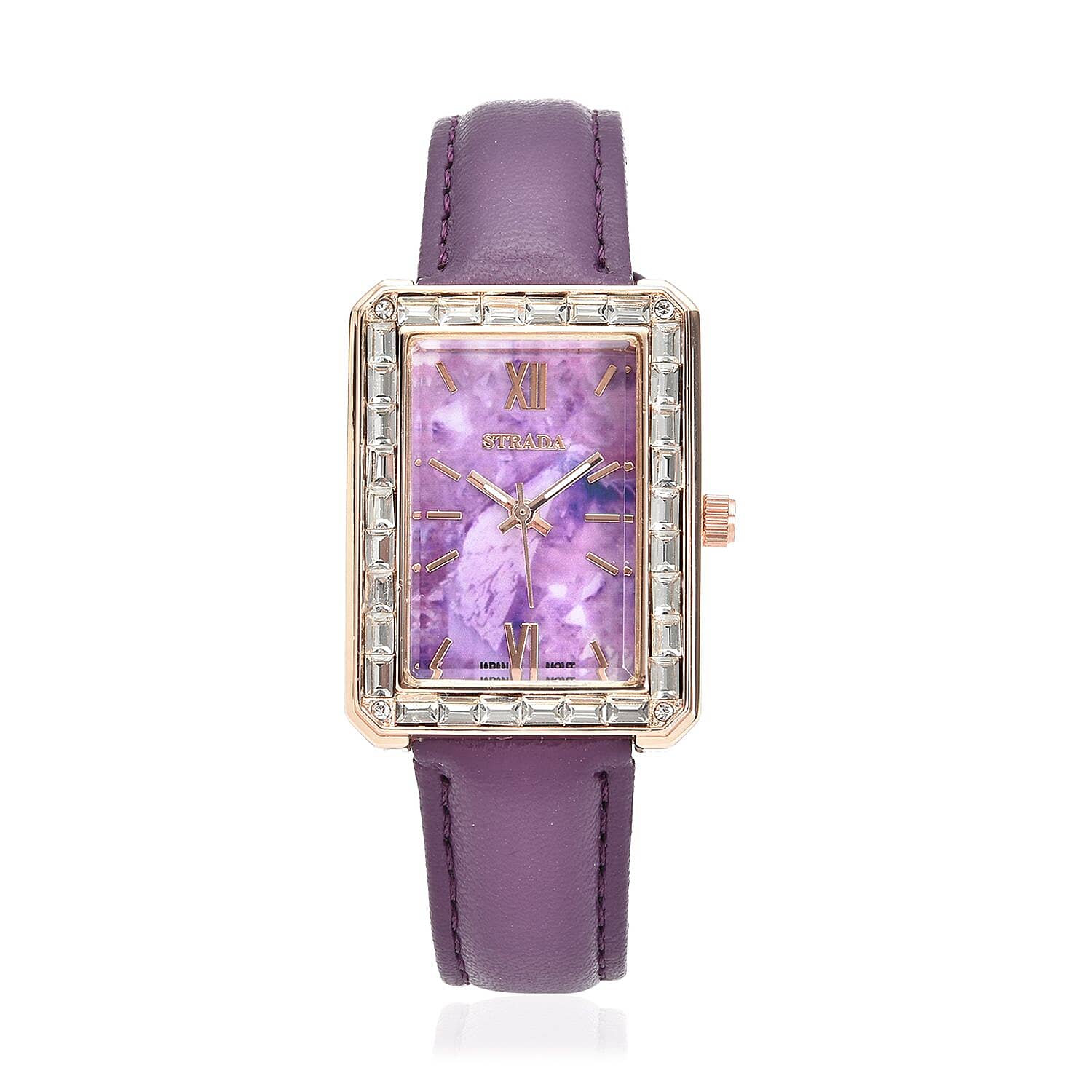 Strada Austrian Crystal Japanese Movement Simulated Amethyst Dial Watch with Purple Faux Leather Strap (33x26mm) (7.0-8.0Inches)