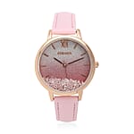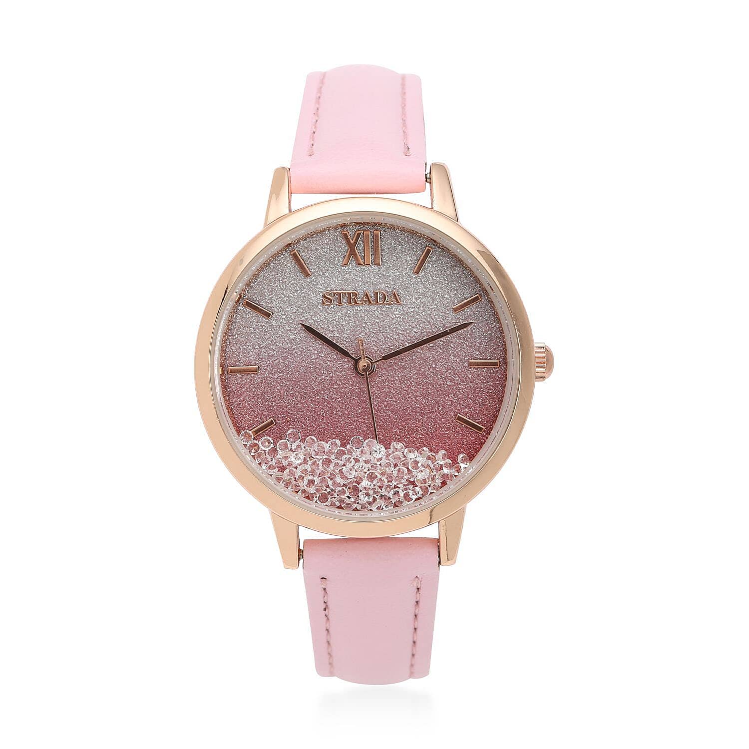 STRADA Austrian Crystal Japanese Movement Stardust Dial Watch in Pink Faux Leather Strap (34mm) 1.20 ctw