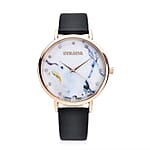This Strada Austrian crystal Japanese movement Watch features a stone pattern dial adorned with Austrian crystals, enhancing its visual appeal with a touch of elegance. It is equipped with a reliable Japanese movement for precise timekeeping. The watch is complemented by a faux leather strap, combining style with comfort for everyday wear.