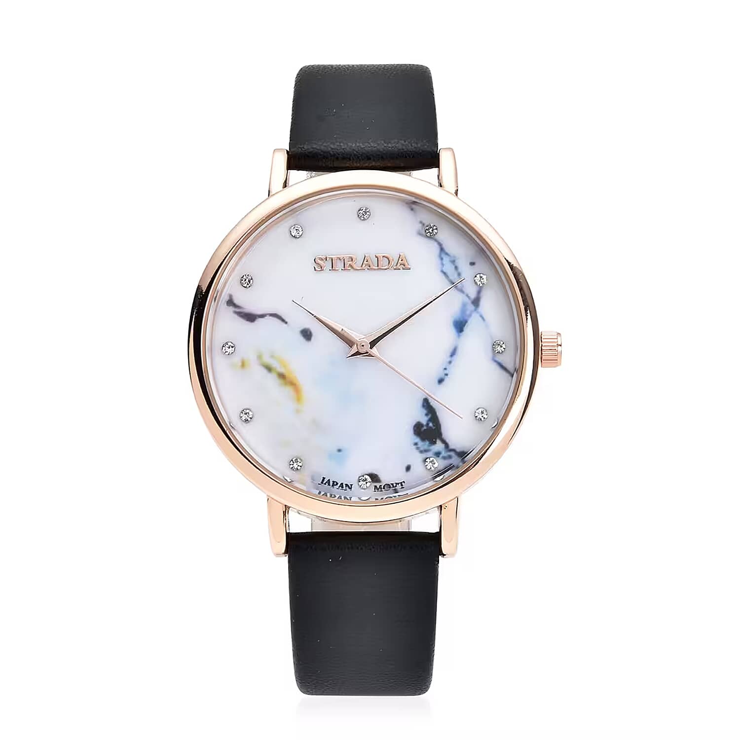 Strada Austrian Crystal Japanese Movement Stone Pattern Dial Watch With Black Faux Leather Strap
