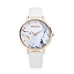 STRADA Austrian Crystal Japanese Movement Stone Pattern Dial Watch With White Faux Leather Strap