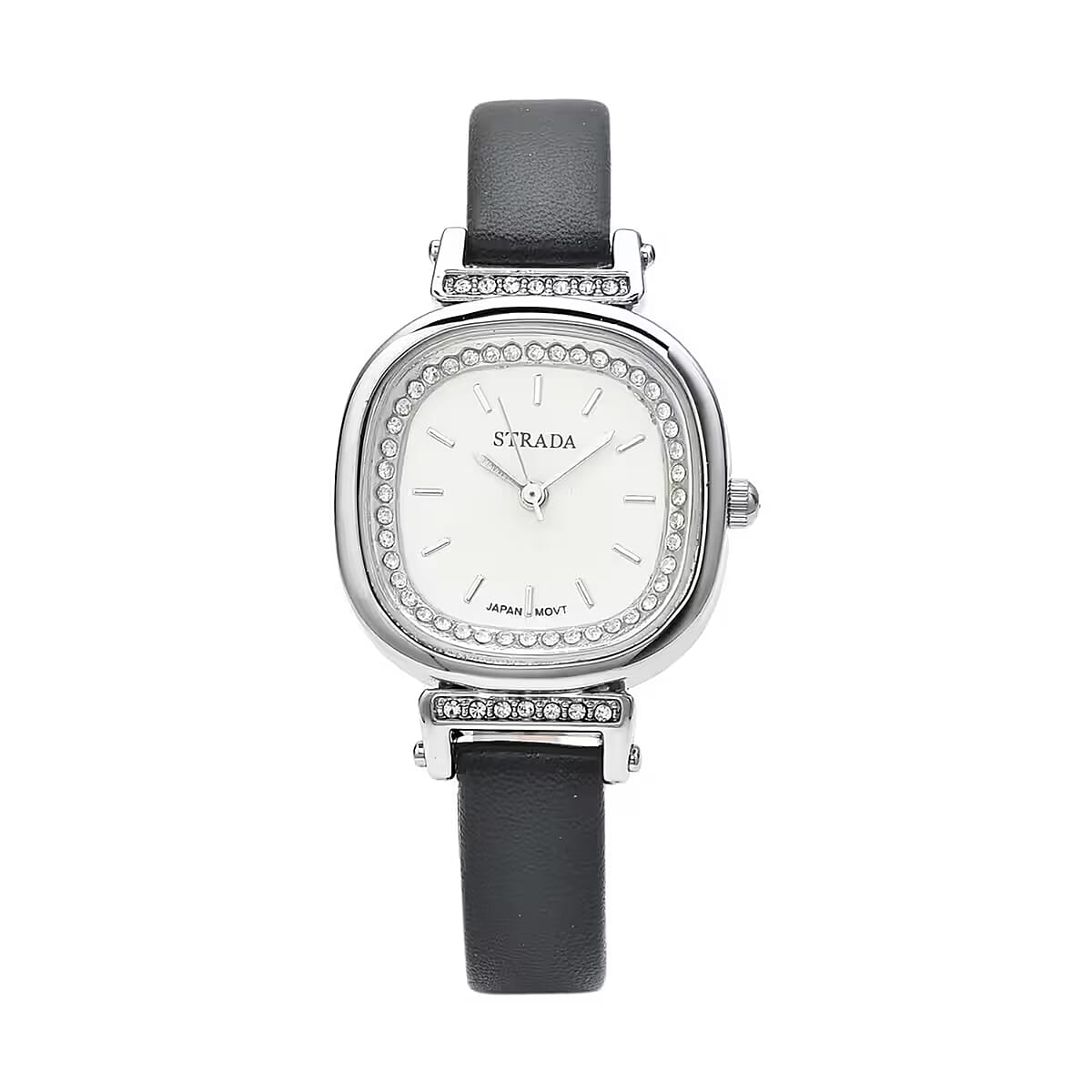 Strada Austrian Crystal Japanese Movement Watch with Black Faux Leather Strap (27.18mm) (5.25-7 Inches)