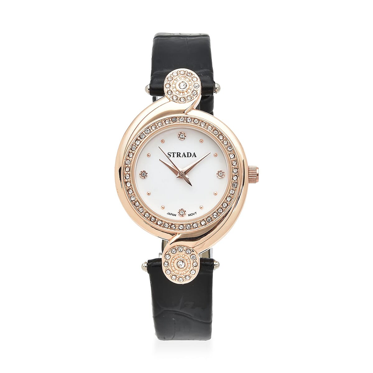 Strada Austrian Crystal Japanese Movement Watch with Black Faux Leather Strap (27.5mm) (7.25-8.25Inches)