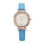 STRADA Austrian Crystal Japanese Movement Watch with Blue Faux Leather Strap (27.18mm) (5.25-7 Inches)