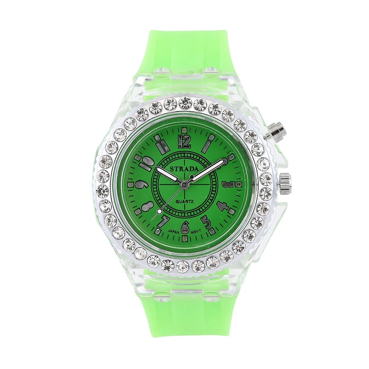 Strada Austrian Crystal Japanese Movement Watch with Fluorescent Green Silicone Strap (25.40 mm) (6.0-7.75 Inches)