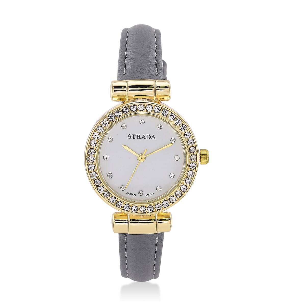 Strada Austrian Crystal Japanese Movement Watch with Gray Faux Leather Strap