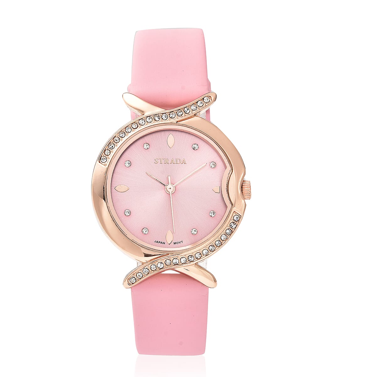 Strada Austrian Crystal Japanese Movement Watch with Pink Vegan Leather Strap