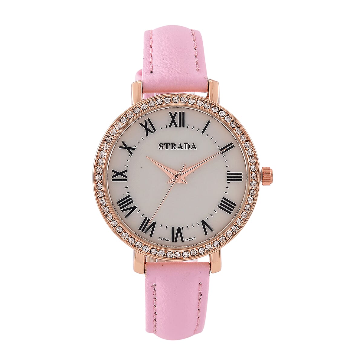 Strada Austrin Crystal Japanese Movement Roman Number Dial Watch with Pink Faux Leather (38.10x38.10mm)