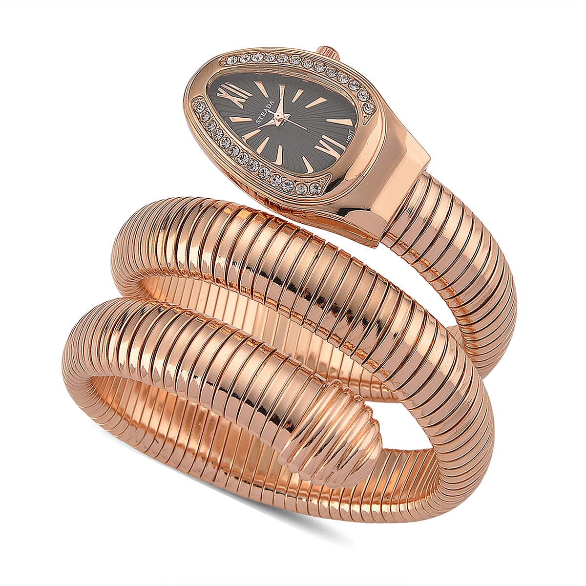 Command attention with the Strada Austrian crystal watch on your wrist. This Japanese movement timepiece offers precision timekeeping with striking elegance. The blue crystal accents enhance your social presence instantly. Its snake-shaped case design speaks to your refined taste.