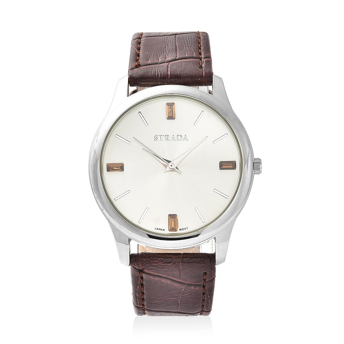 Strada Brown Austrian Crystal Japanese Movement Watch with Brown Faux Leather Band