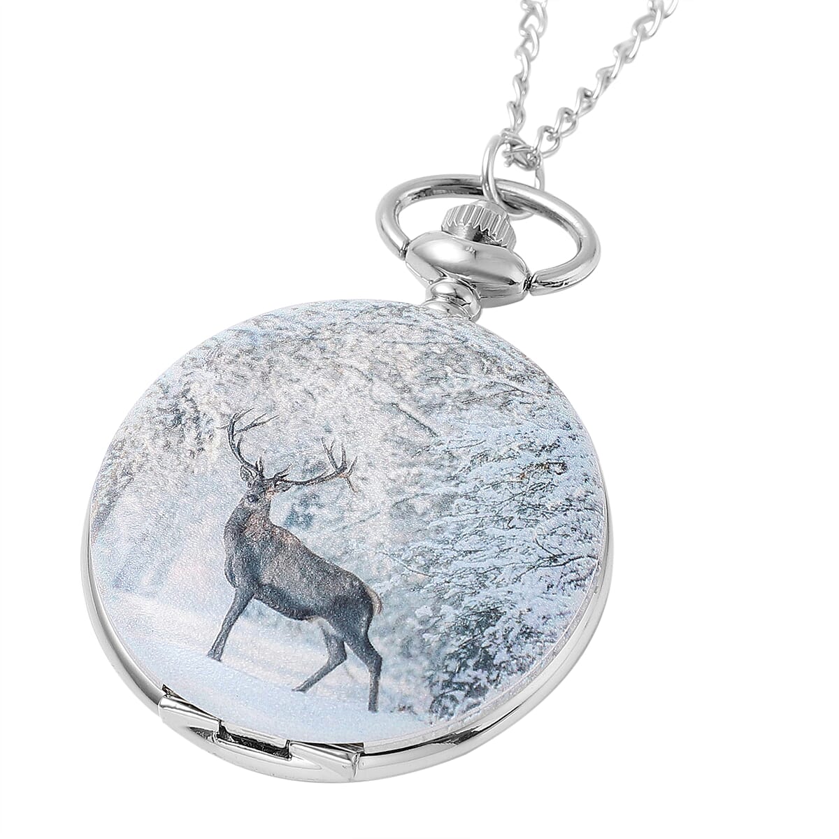 Strada Japanese Movement 3D Winter The Deer Pattern Pocket Watch with Chain (31 Inches)