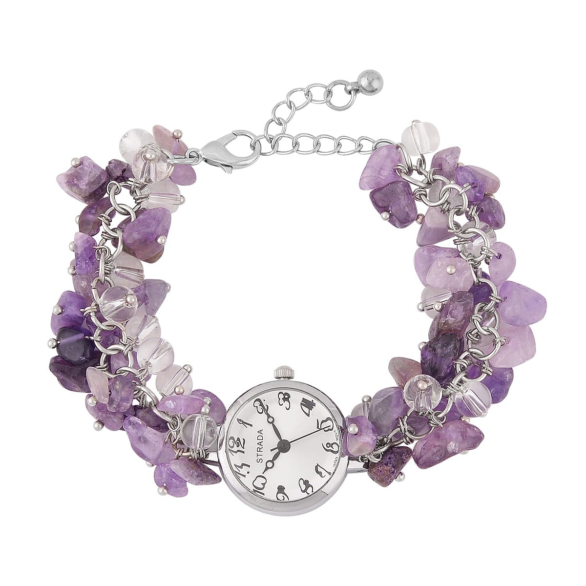 Strada Japanese Movement Amethyst, Glass Bracelet Watch in Stainless Steel (22.85mm) (7.00- 8.5 In) 20.00 ctw