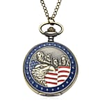 Strada Japanese Movement Antique Mt. Rushmore with Eagle Head and American Flag Pattern Pocket Watch with Chain (31 Inches)