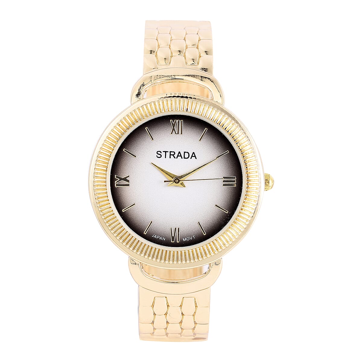 Strada Japanese Movement Bangle Watch with Black Dial in Goldtone (6.5-7.0In)