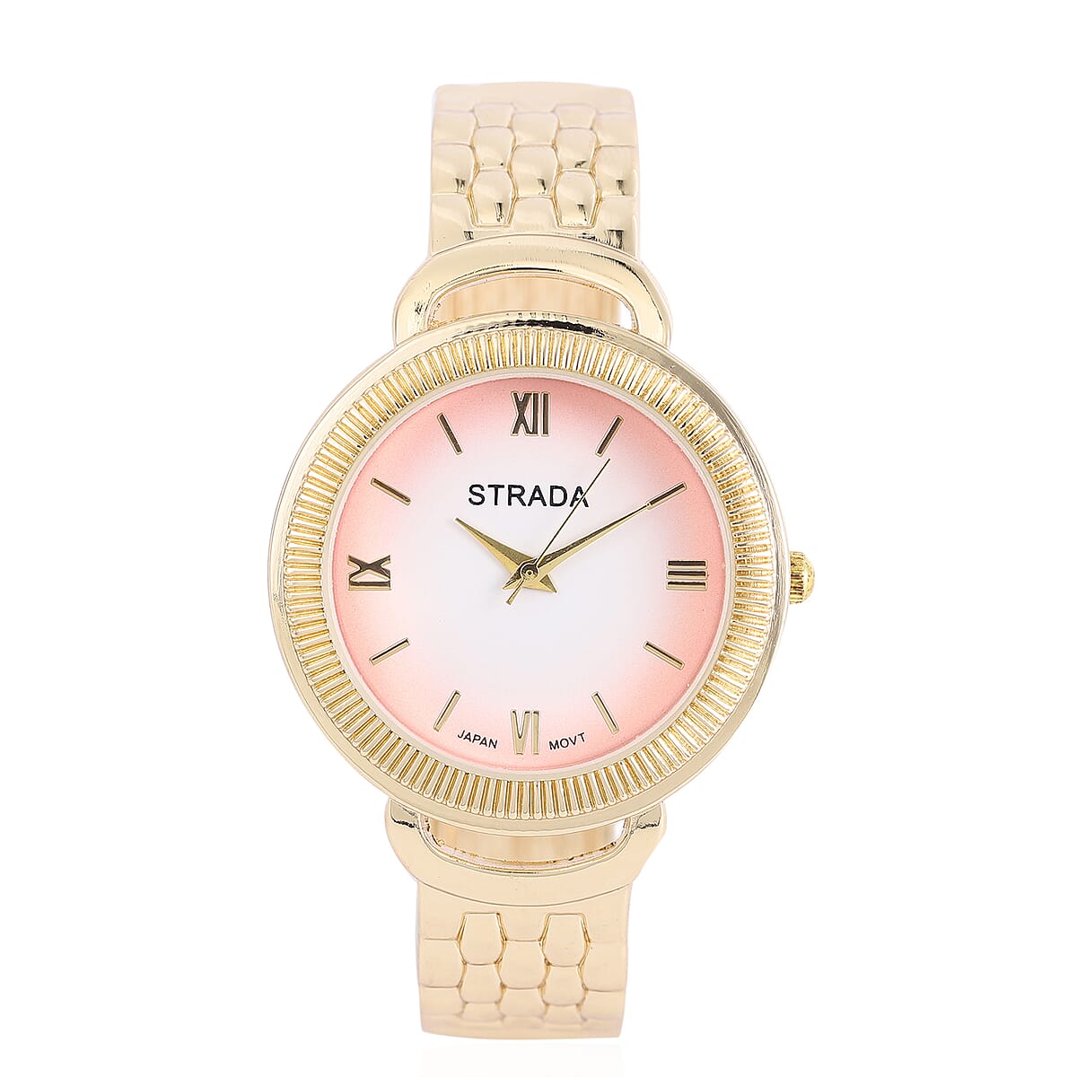 Strada Japanese Movement Bangle Watch with Pink Dial in Goldtone (6.5-7.0In)