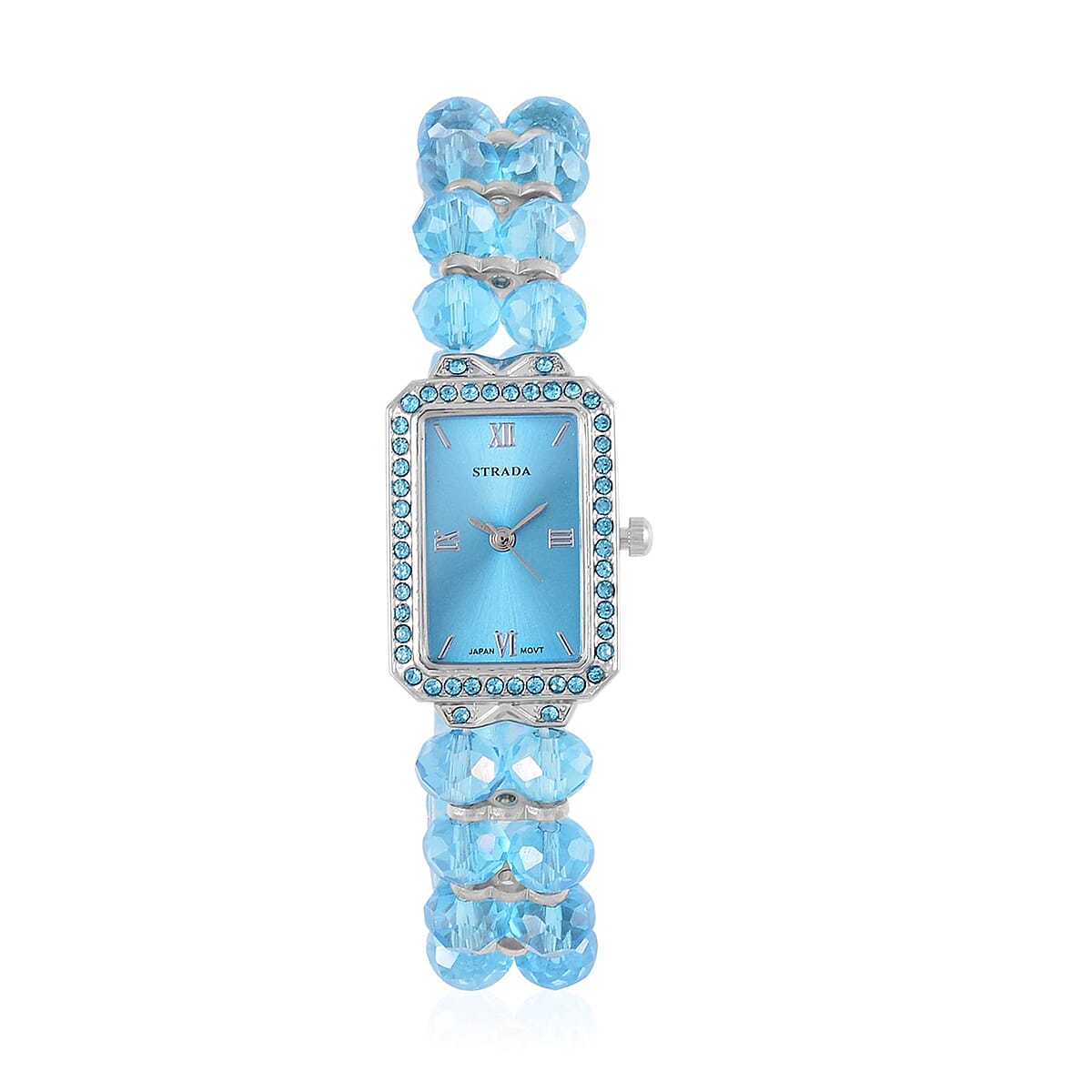 Strada Japanese Movement Blue Austrian Crystal & Blue Color Glass Beaded Stretch Bracelet Watch (20.32-28.19mm) (6.50-7.00 Inches)