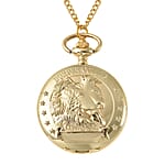 This Strada Japanese movement pocket watch features an intricately designed case featuring a dog, making it a perfect collectible for dog lovers. Powered by precise Japanese movement, it offers any ensemble reliable timekeeping and a classic touch. This engraved pocket watch combines functional art with practicality, encapsulated in a durable, easy-to-carry design.