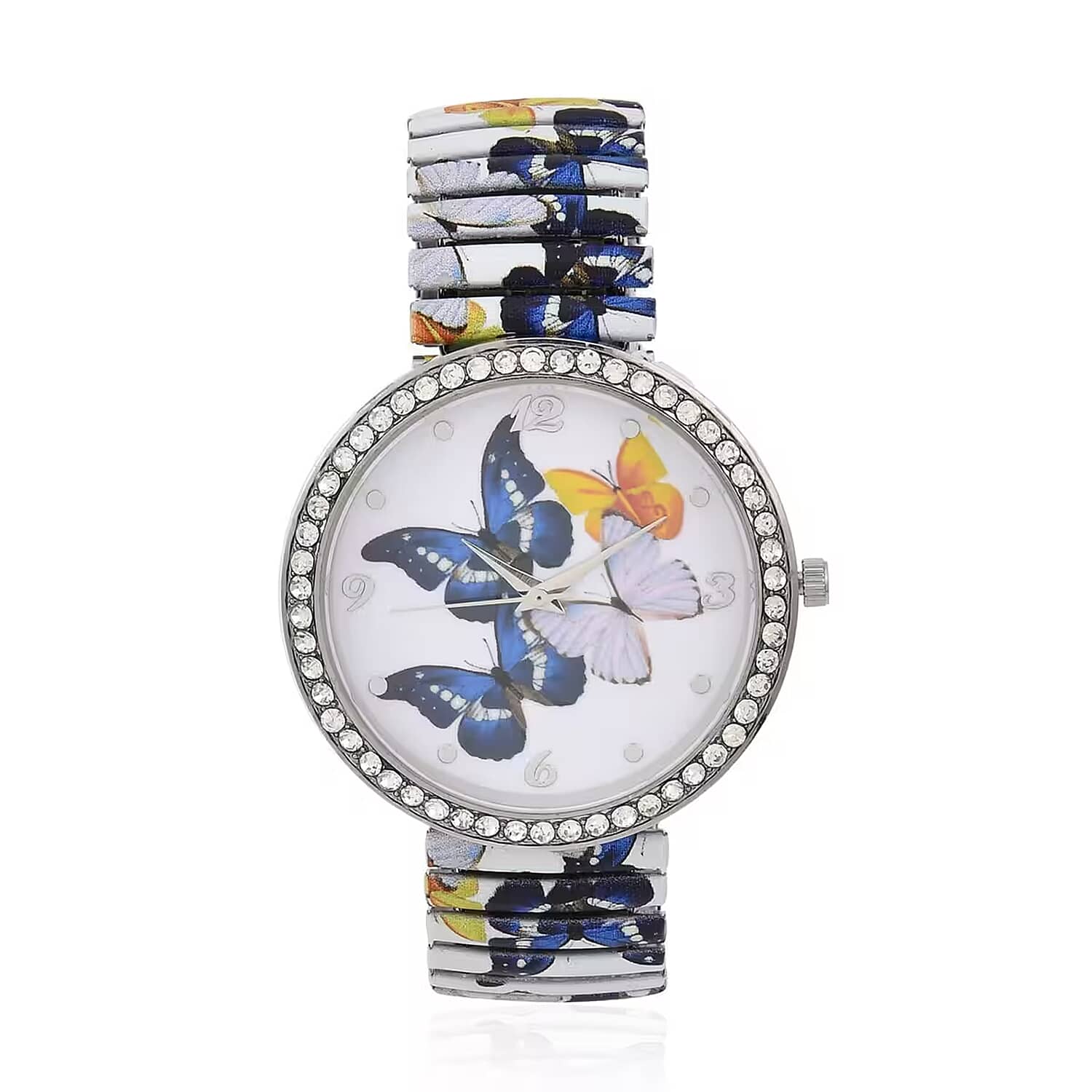 Strada Japanese Movement Bracelet Watch in Stainless Steel, Butterfly Stretchable Watch with Austrian Crystals Studded Stretch Band Wrist Watch, Stretchable Animal Watches for Women (42.40mm) 6.75-7.25 Inches