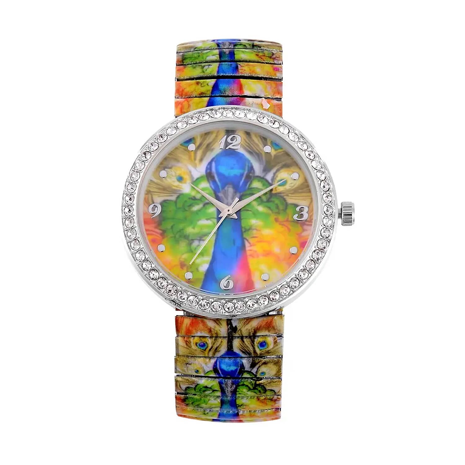Strada Japanese Movement Bracelet Watch in Stainless Steel, Stretchable Watch with Austrian Crystals and Peacock Pattern (42.40mm) (6.50-7.0 Inches)