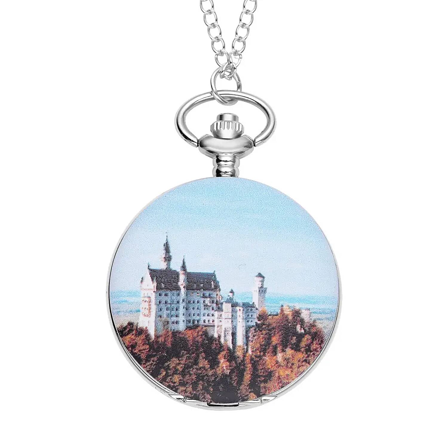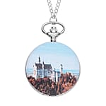Strada Japanese Movement Castle Pattern Pocket Watch with Silvertone Chain (up to 31 Inches)