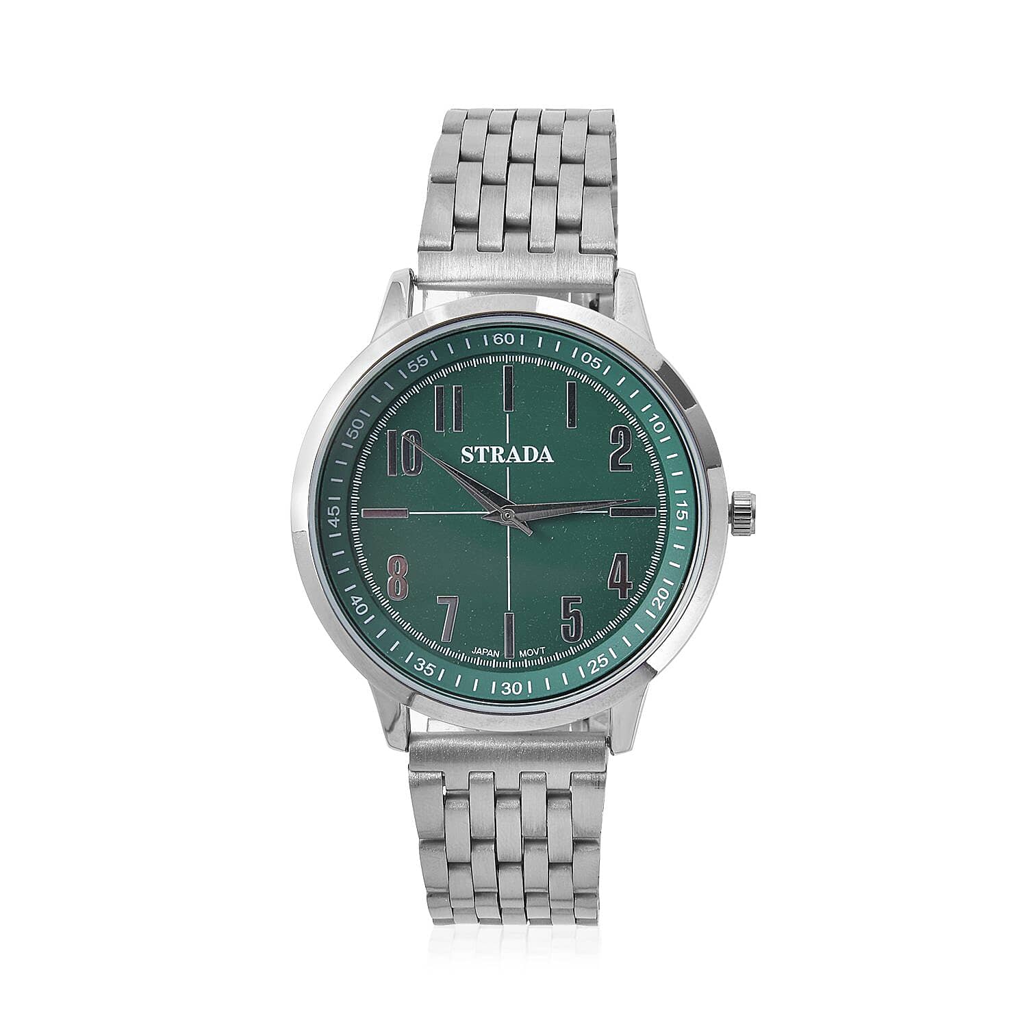 Strada Japanese Movement Dark Green Dial Watch in Stainless Steel (40mm) (7.50-8.25Inches)