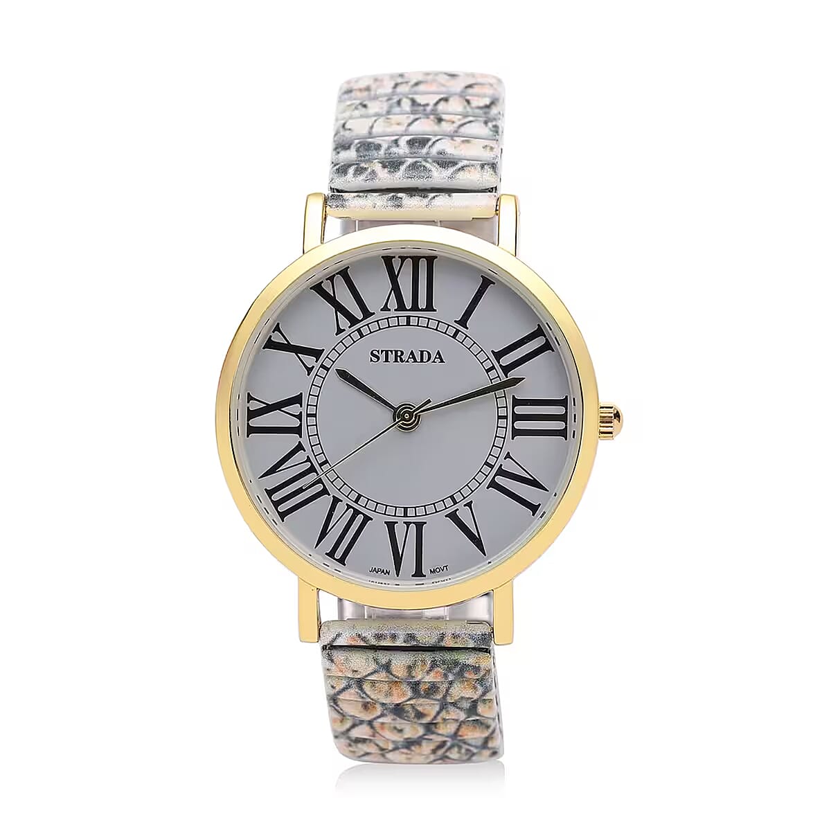 Strada Japanese Movement Gray Dial Bracelet Watch in Goldtone with Snake Pattern Strap