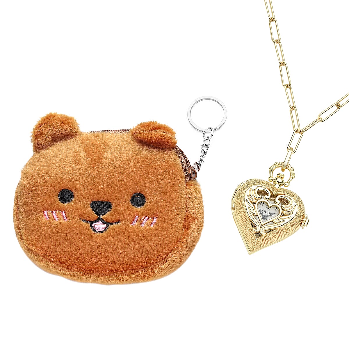 This stunning pocket watch is crafted by STRADA to enhance your style statement. This pocket watch comes with heart shape design and features a long paper clip chain to carry it. A functional teddy-bear-shaped wallet is added to the package to store your small valuables. Carry this watch when going to a party or attending an event.