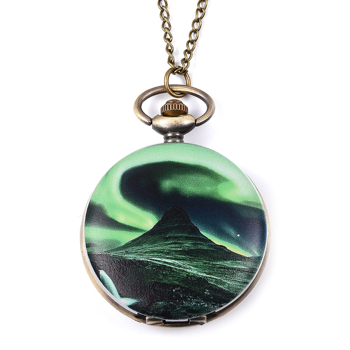 Strada Japanese Movement Northern Lights Pocket Watch in Goldtone with Chain 32 Inches