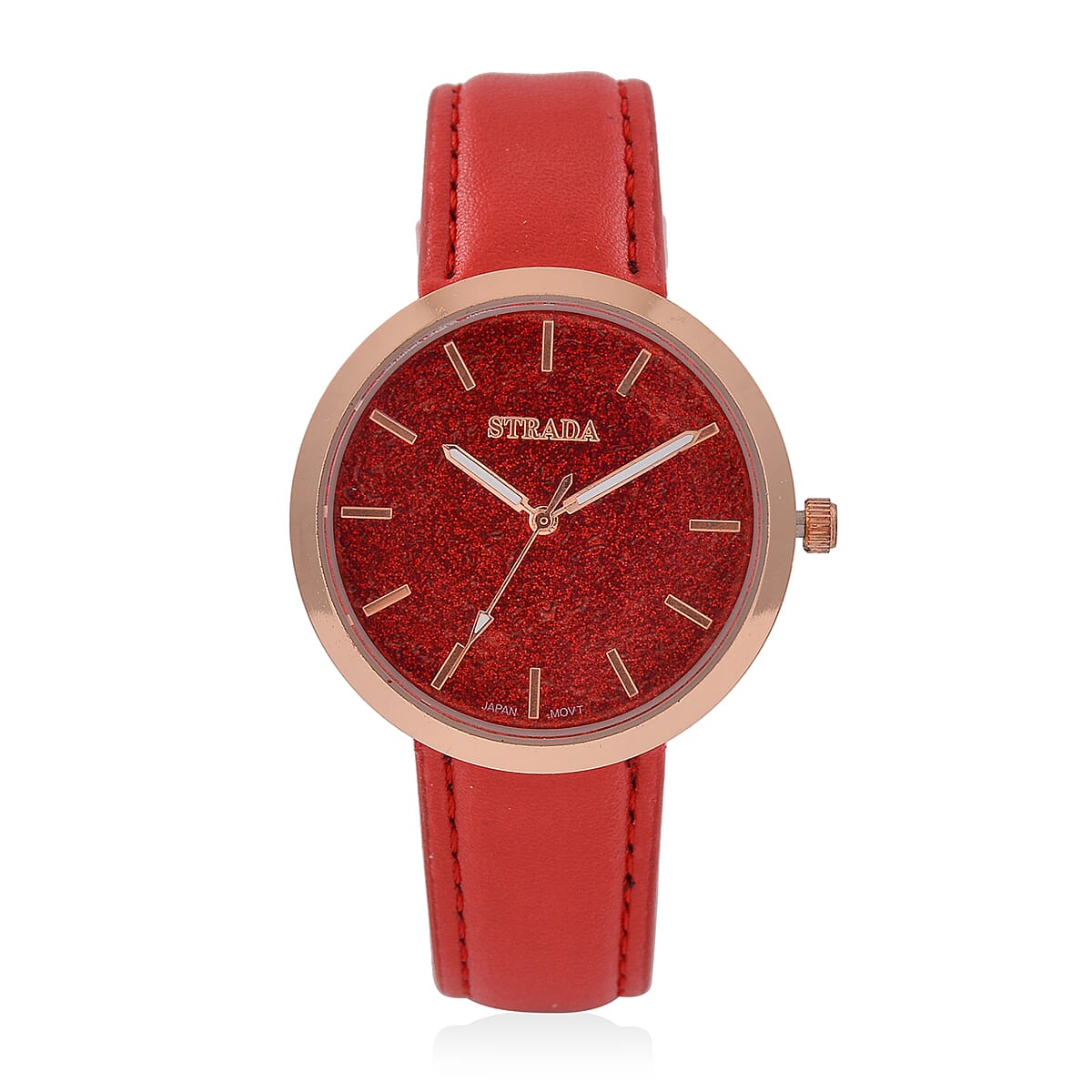 Strada Japanese Movement Red Stardust Dial Watch with Red Faux Leather Strap