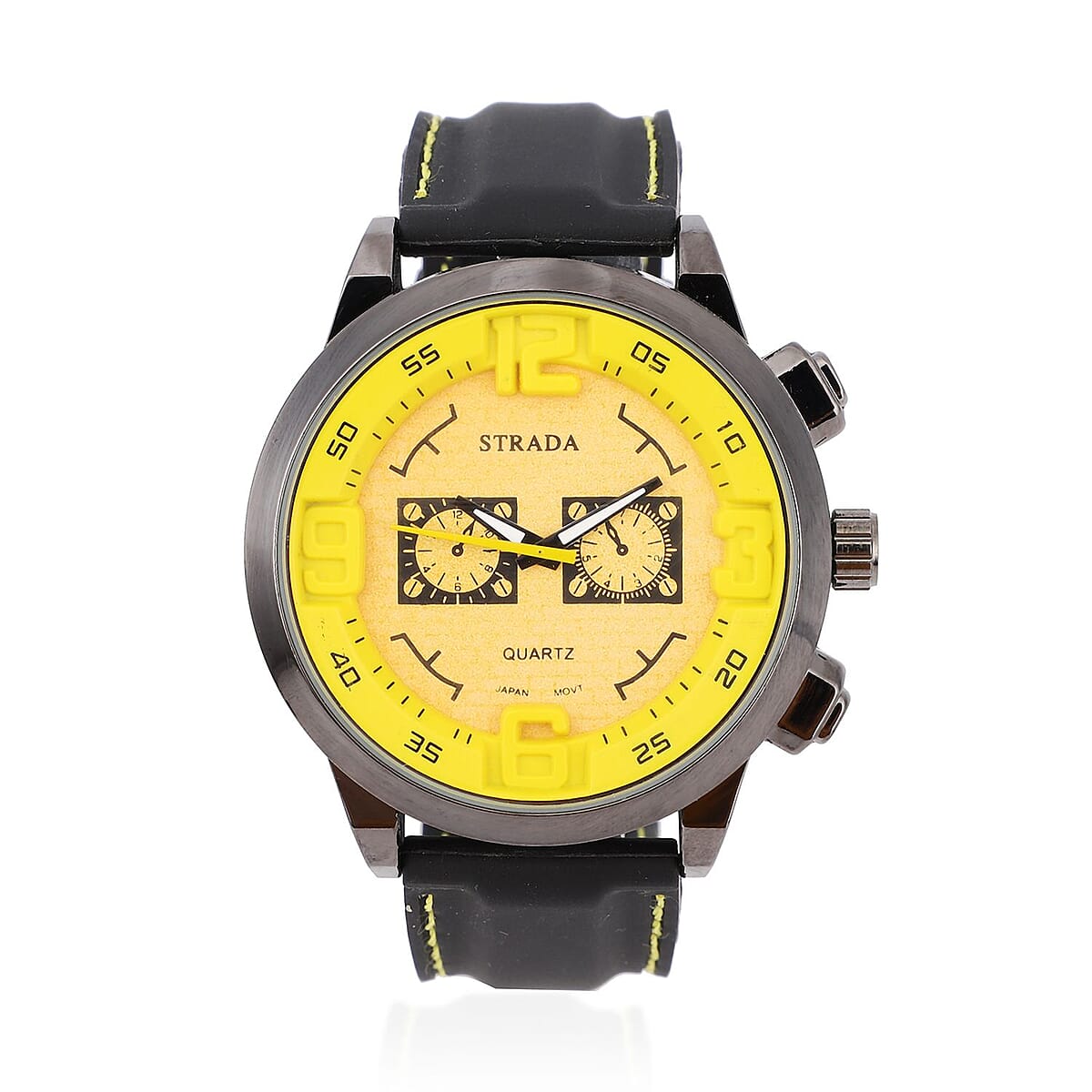 Strada Japanese Movement Sport Look Watch with Yellow Line and Black Silicone Strap (50mm) (8.0-9.50Inches)