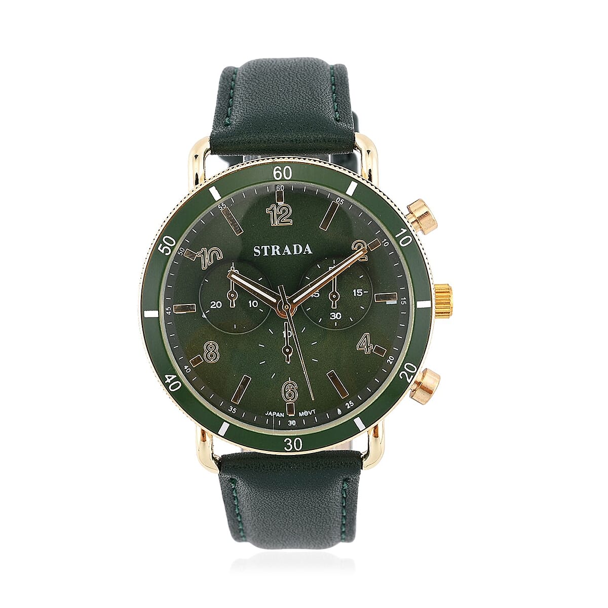 Strada Japanese Movement Stylish Dress Watch with Dark Green Faux Leather Strap (42.2mm) (8.0-9.0Inches)
