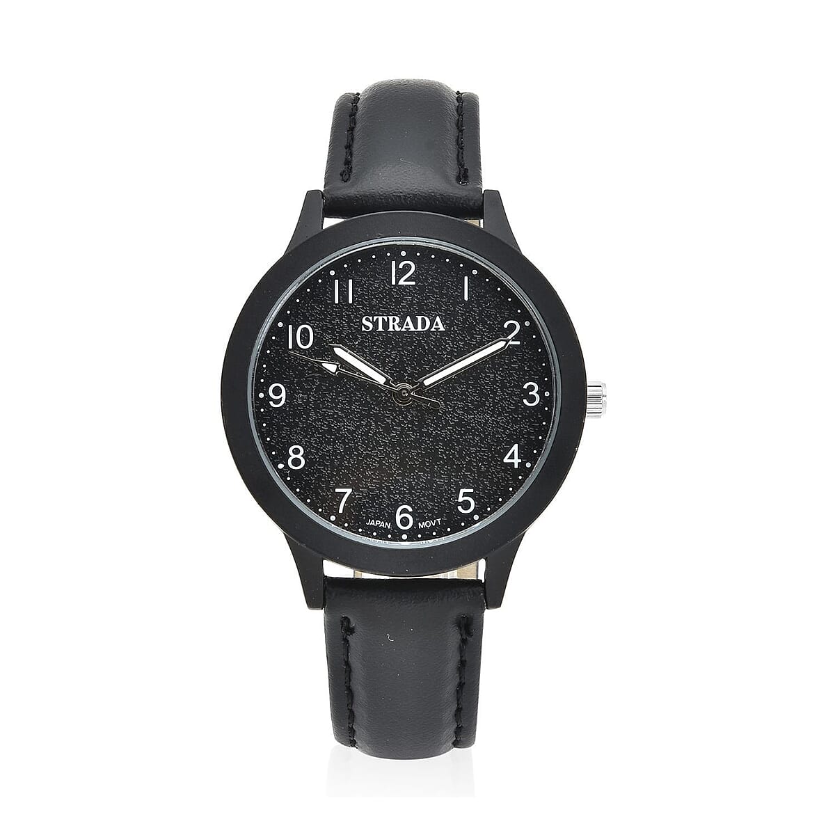Strada Japanese Movement Watch with Black Faux Leather Strap (36.32 mm) (5.75-7.75 Inches)