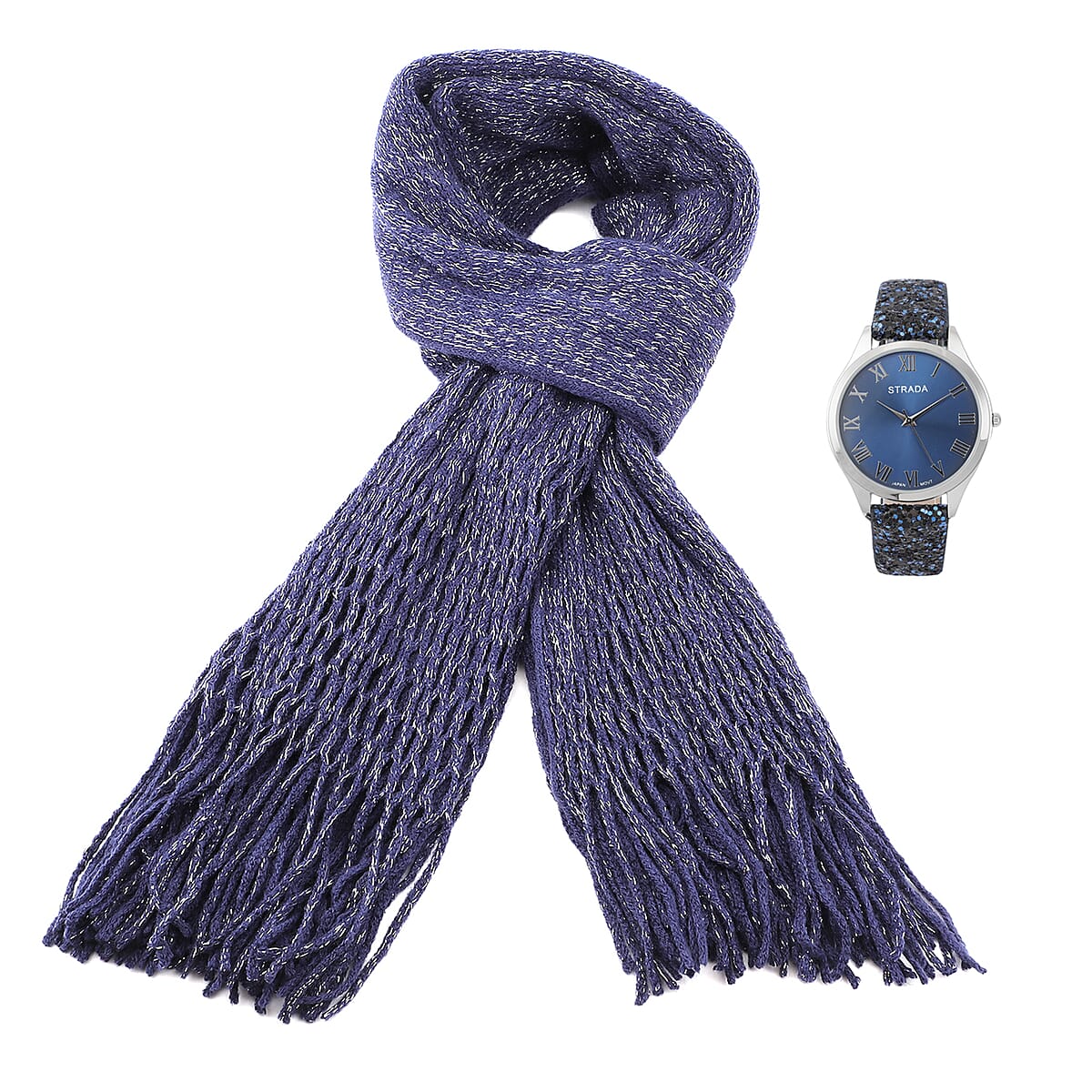 Strada Japanese Movement Watch with Dark Blue Sequin Faux Leather Strap and Navy Blue Solid Acrylic Scarf