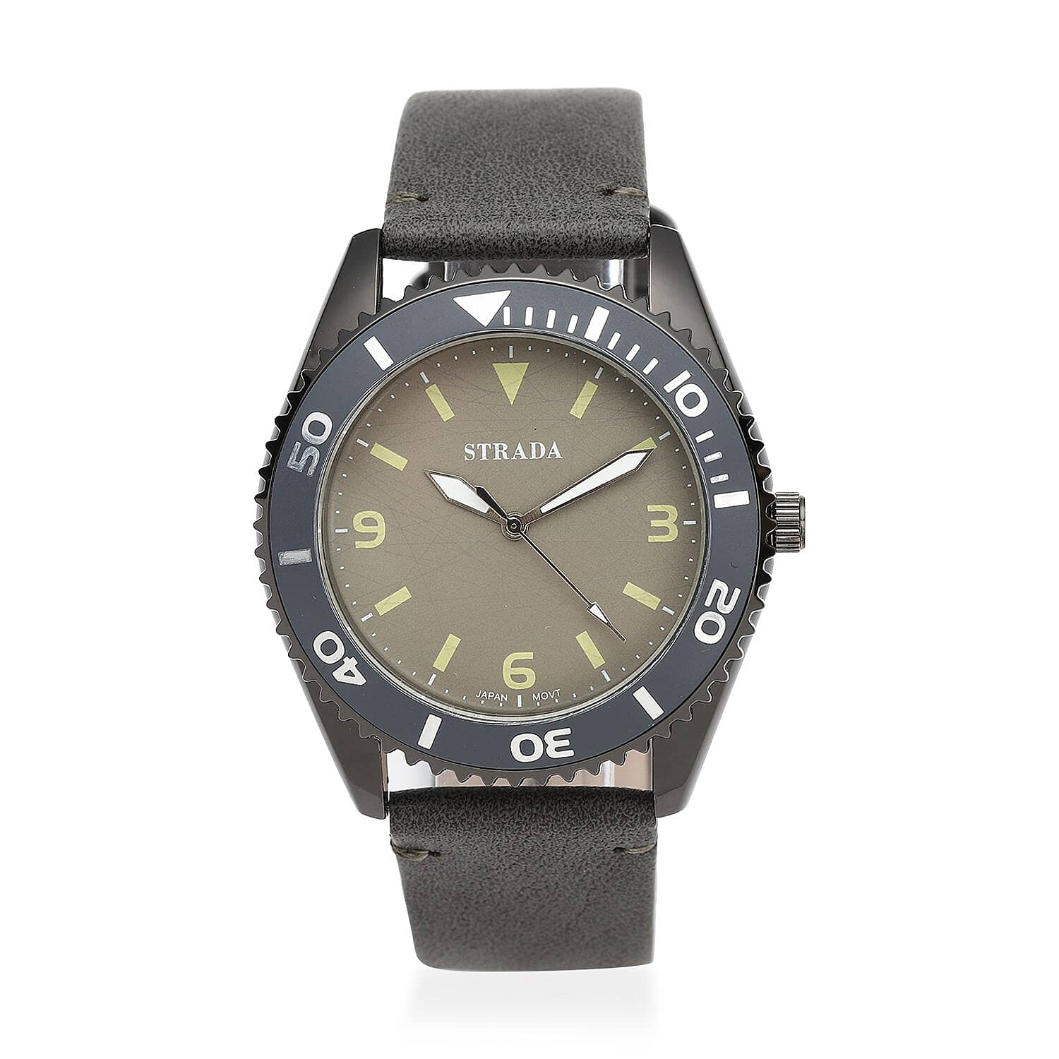 Strada Japanese Movement Watch with Dark Gray Faux Leather Strap (42mm) (8.25-9.25Inches)